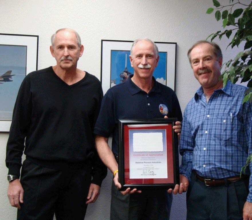 NPI was honored with a visit from the CEO of United Space Alliance (USA) and four-time Shuttle Astronaut Dick Covey and other USA representatives. During the visit, NPI was presented a Certificate of Appreciation for dedicated service to United Space Alliance.